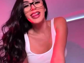 Hot Nerd babe fingers her dripping wet pussy