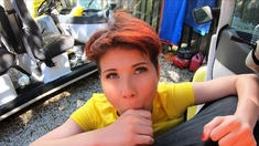 Teen doing chores and giving blowjob